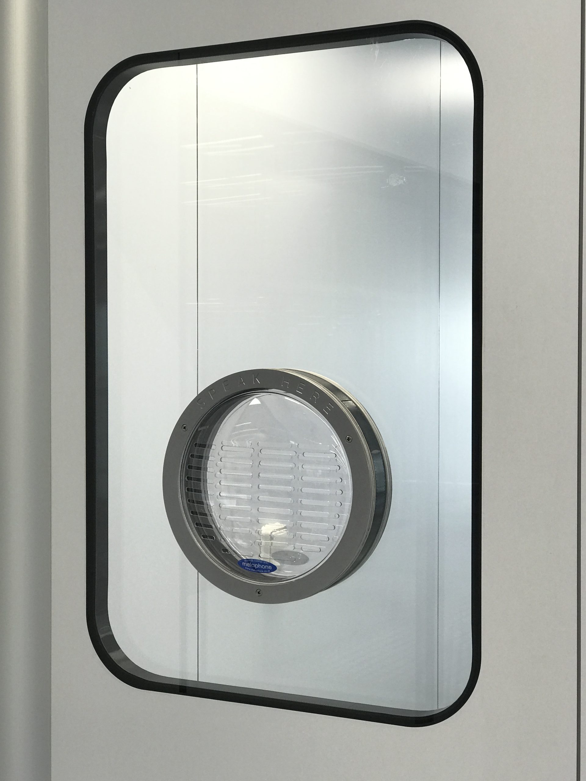 Designed for use in areas where hygiene and safety are essential and to allow communication in a sterile environment. There is no transmission of germs or dust through air flow. Speech is transmitted through a transparent diaphragm.